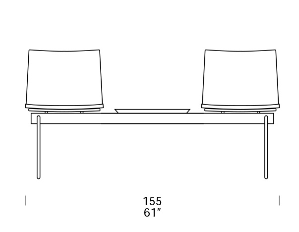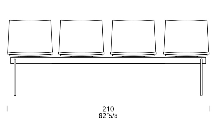 Fijo. También disponible con cojín o tapizado. Reposabrazos opcionales. Los modelos de 3 y 4 plazas pueden incorporar una unidad de mesa.