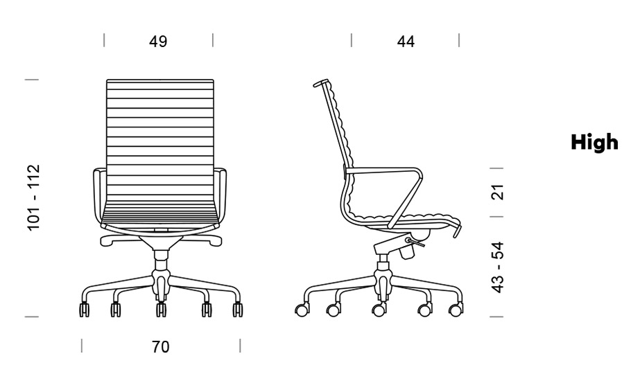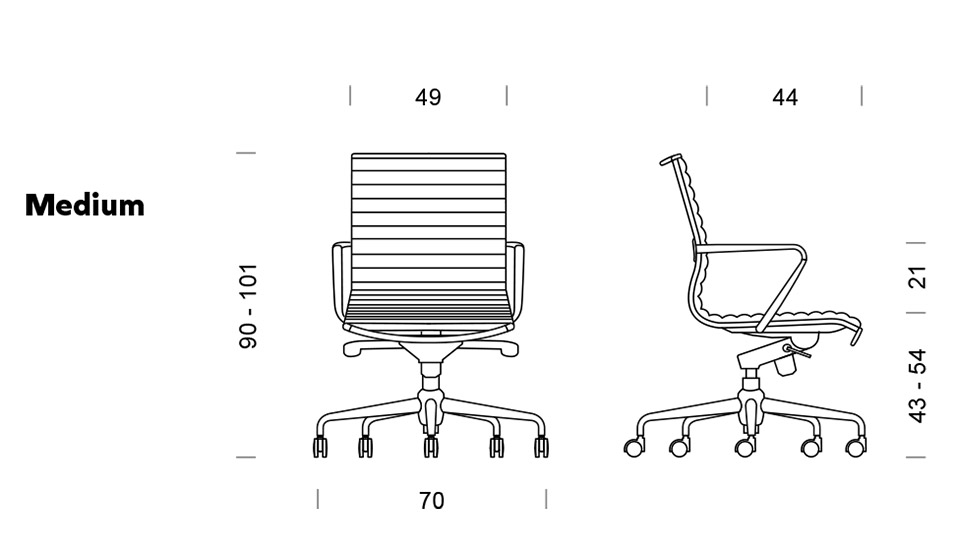 Travesaños en forma de C, asiento de cuero suave. Respaldo medio o alto.