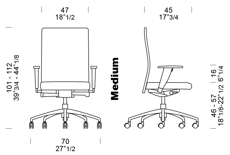 Soporte lumbar giratorio y regulable. Respaldo medio o alto.