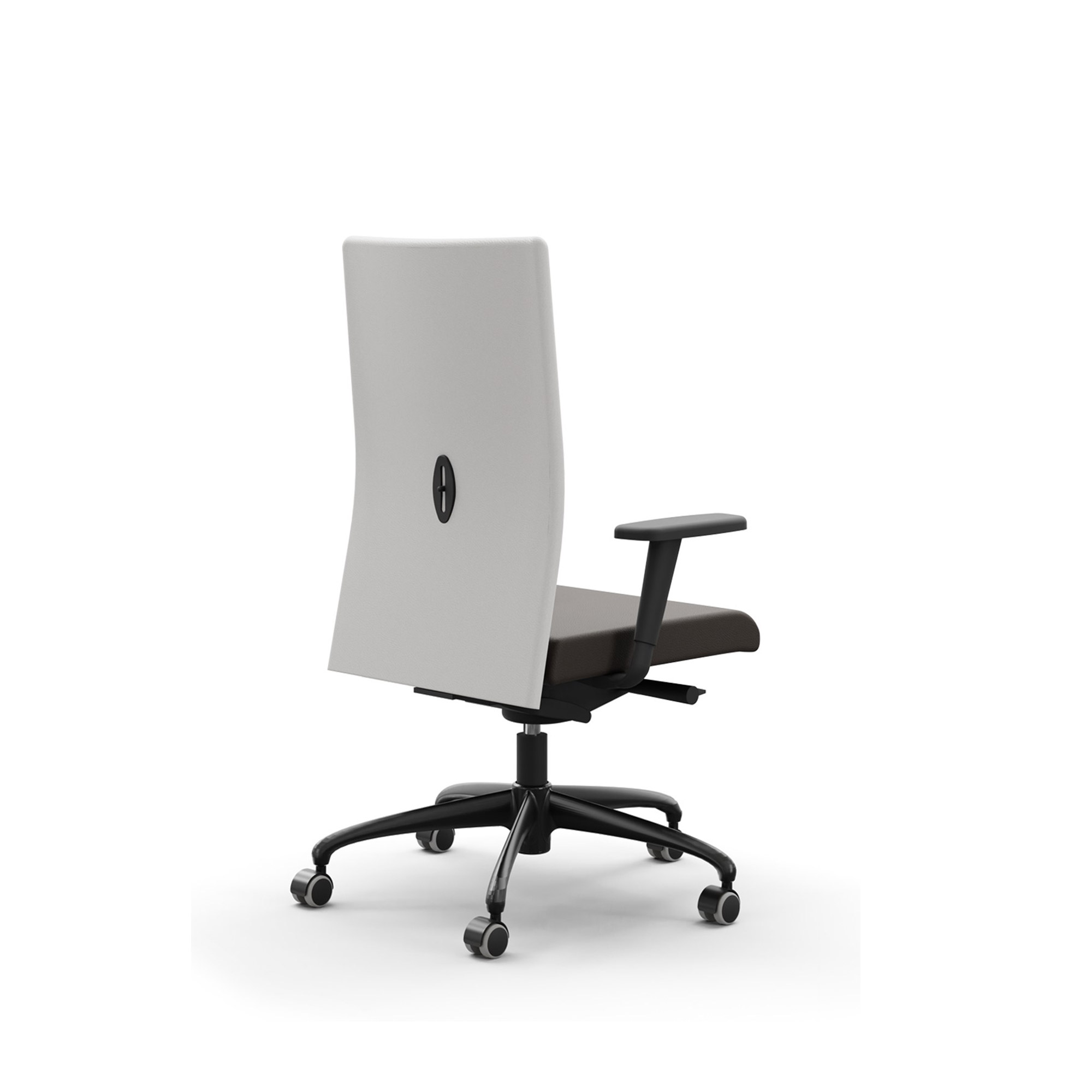 Está disponible en numerosas combinaciones, empezando por el respaldo regulable de malla o tapizado, que garantiza una postura correcta durante las horas de trabajo.