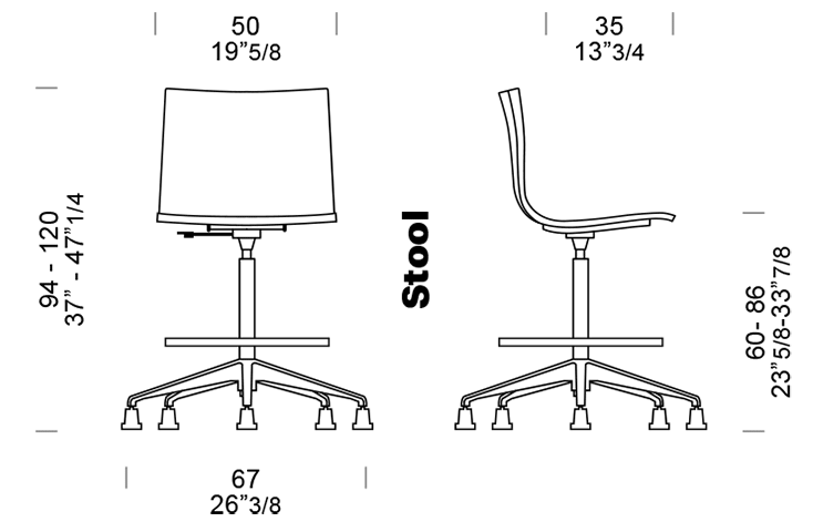 Giratoria, acabado ral o carcasa tapizada. Con o sin reposabrazos. Disponible en versión Stoll.