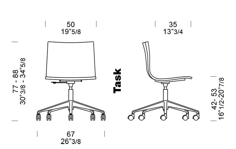 La variante Task es una silla lineal diseñada para la oficina contemporánea. Su carcasa de polímero de ingeniería y la estructura metálica la convierten en una elección minimalista pero tecnológica.