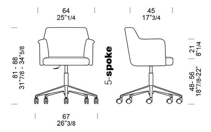 Carcasa de poliuretano, estructura de metal. Varias opciones de base y tapizado disponibles.