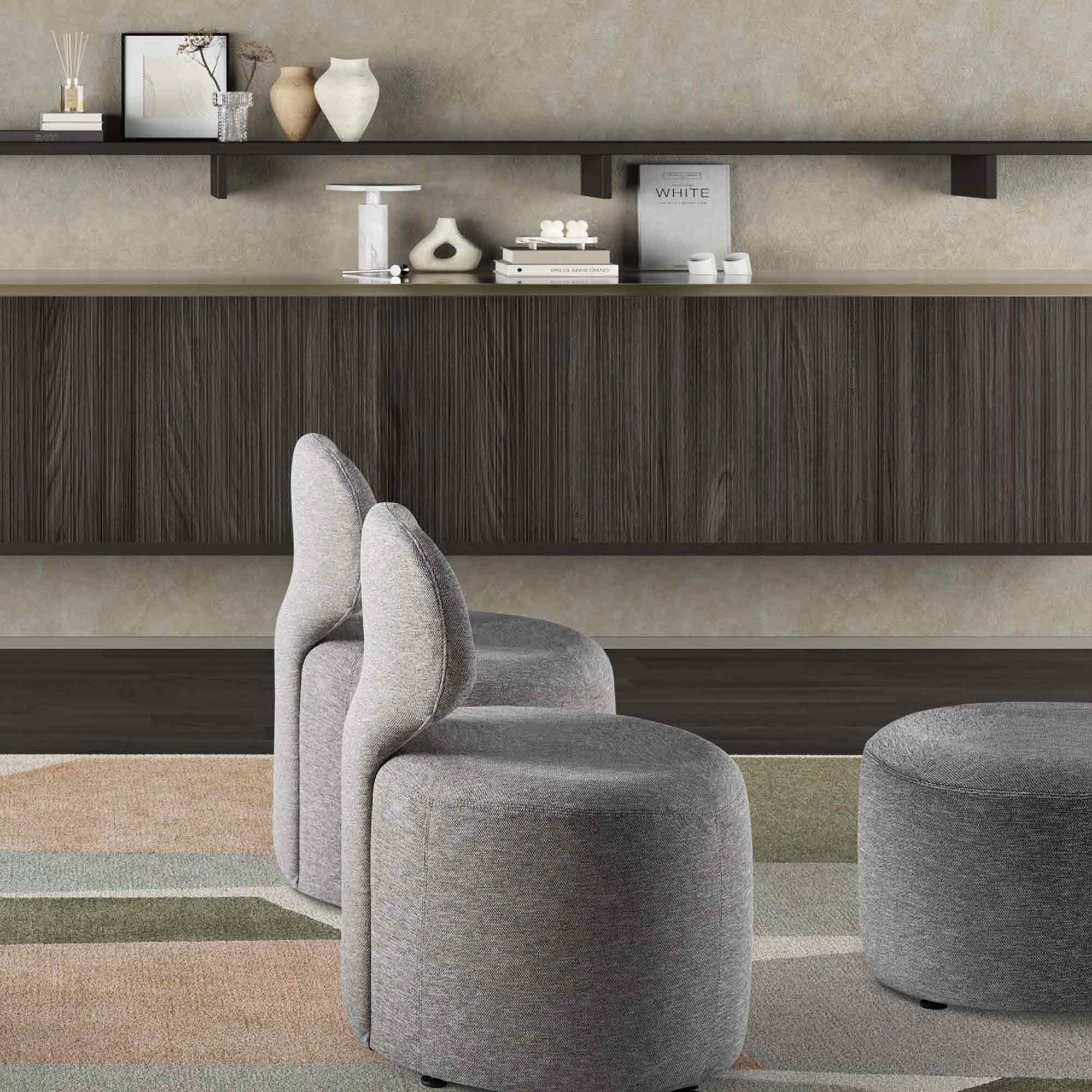 Hoop reinventa el concepto de otomana añadiendo un respaldo blando que ha sido diseñado para envolver y dar apoyo, proporcionando además una flexibilidad sin límites.