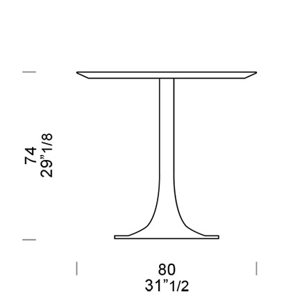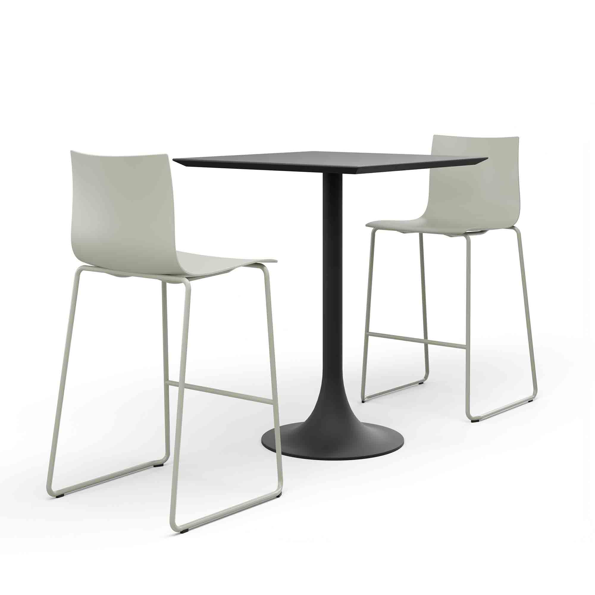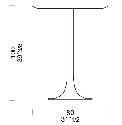 Il tavolo di altezza media è disponibile anche con lato 130cm e gamba a doppio cono - lo standard è 80cm.